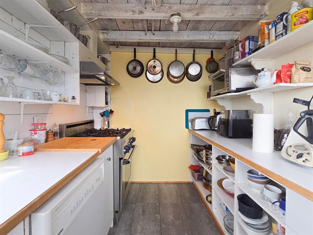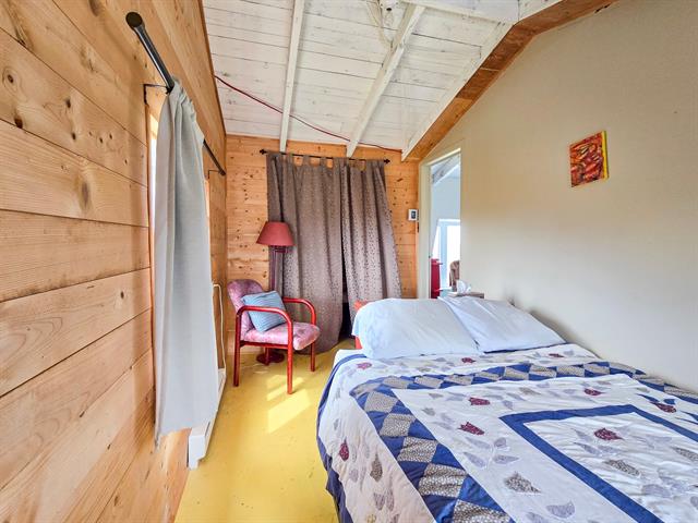 Autrefois bâtiment accessoire, cette propriété a été transformée en résidence habitable. Revêtue de bardeaux de cèdre, elle séduit par son cachet et son environnement privilégié : aucun voisin à l'arrière, une terre protégée en toile de fond et un accès direct aux Buttes des Demoiselles. À distance de marche du site de La Grave, elle offre un aménagement réfléchi, une aire ouverte conviviale et une tranquillité rare.