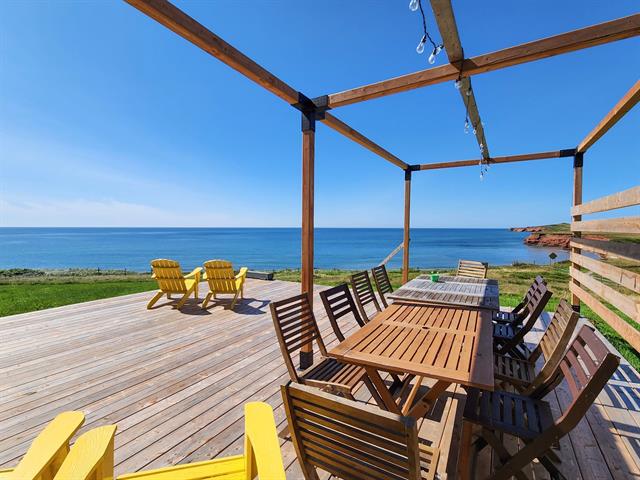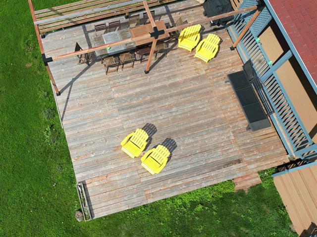 À l'extérieur, une vaste terrasse en bois offre un endroit