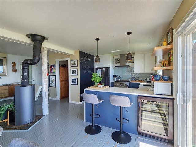 lumineux, est équipé d'un foyer au bois central, créant un